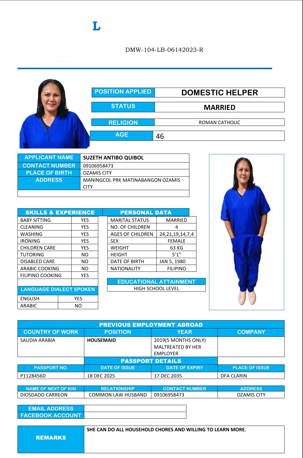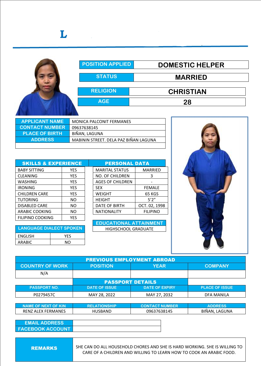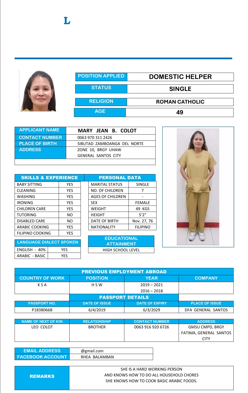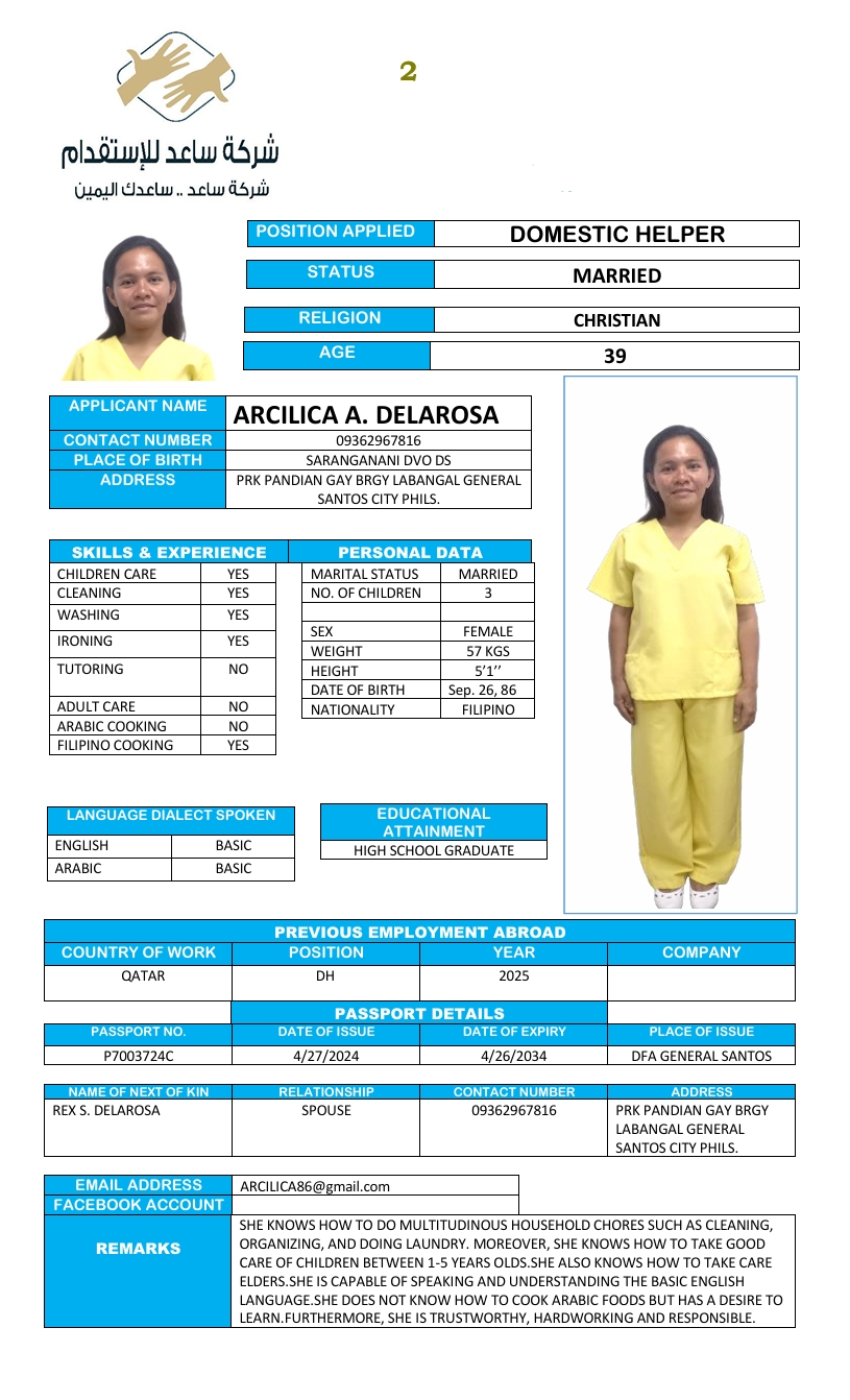 المهنة : عاملة منزلية