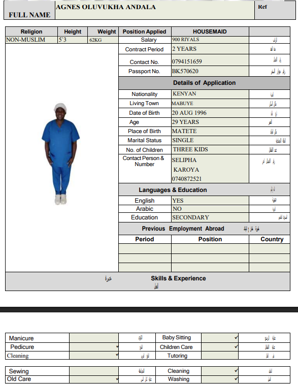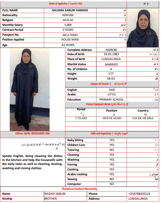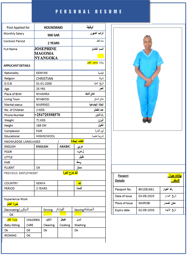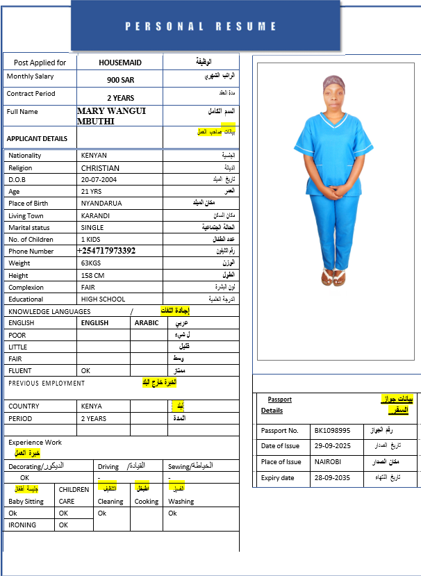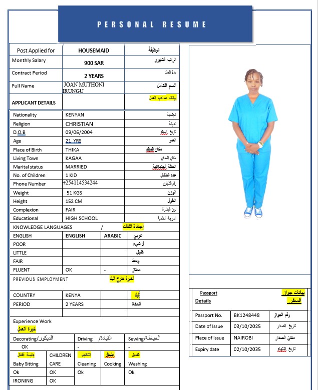المهنة : عاملة منزلية