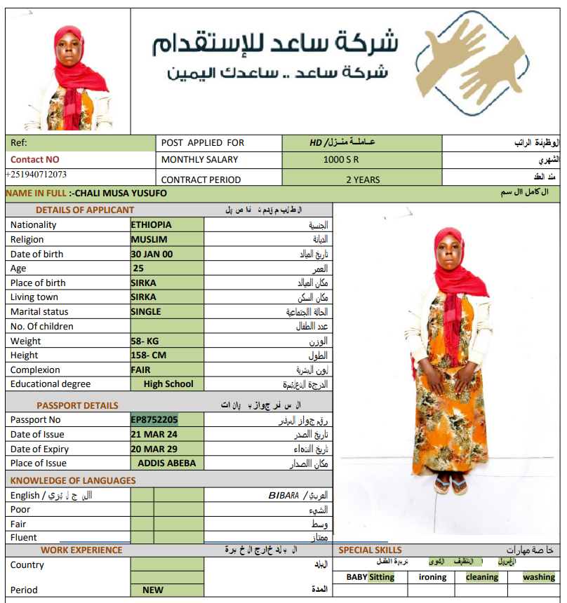 الجنسية : إثيوبيا