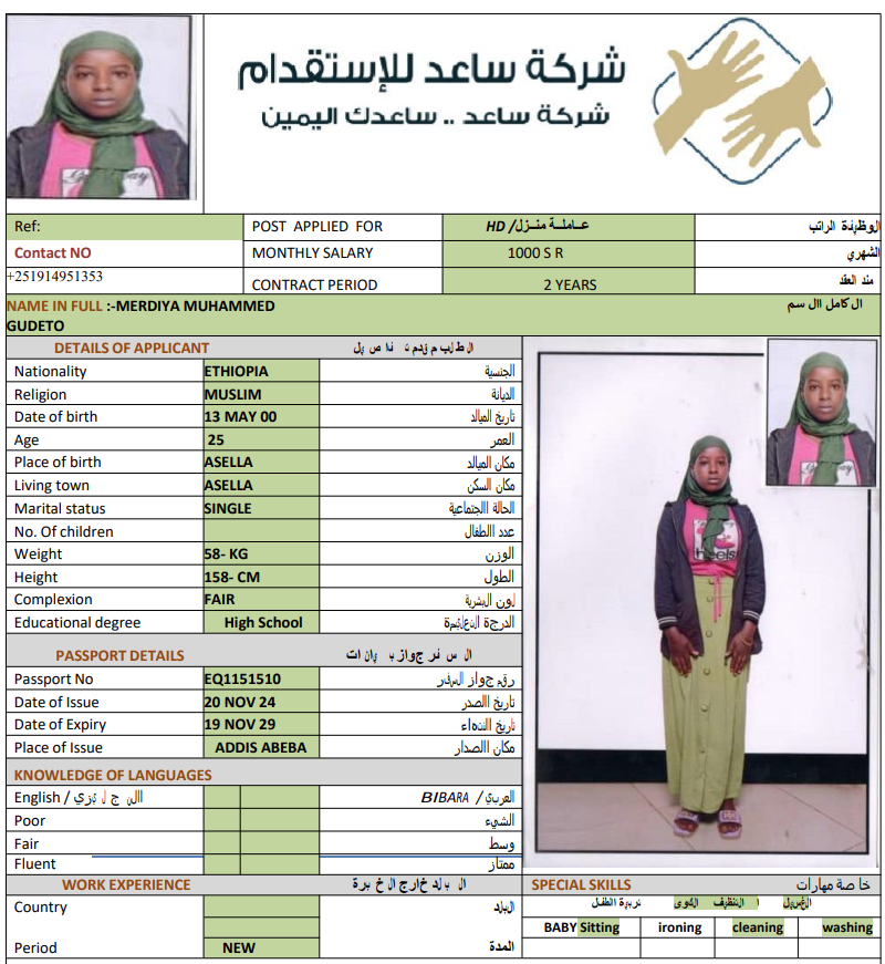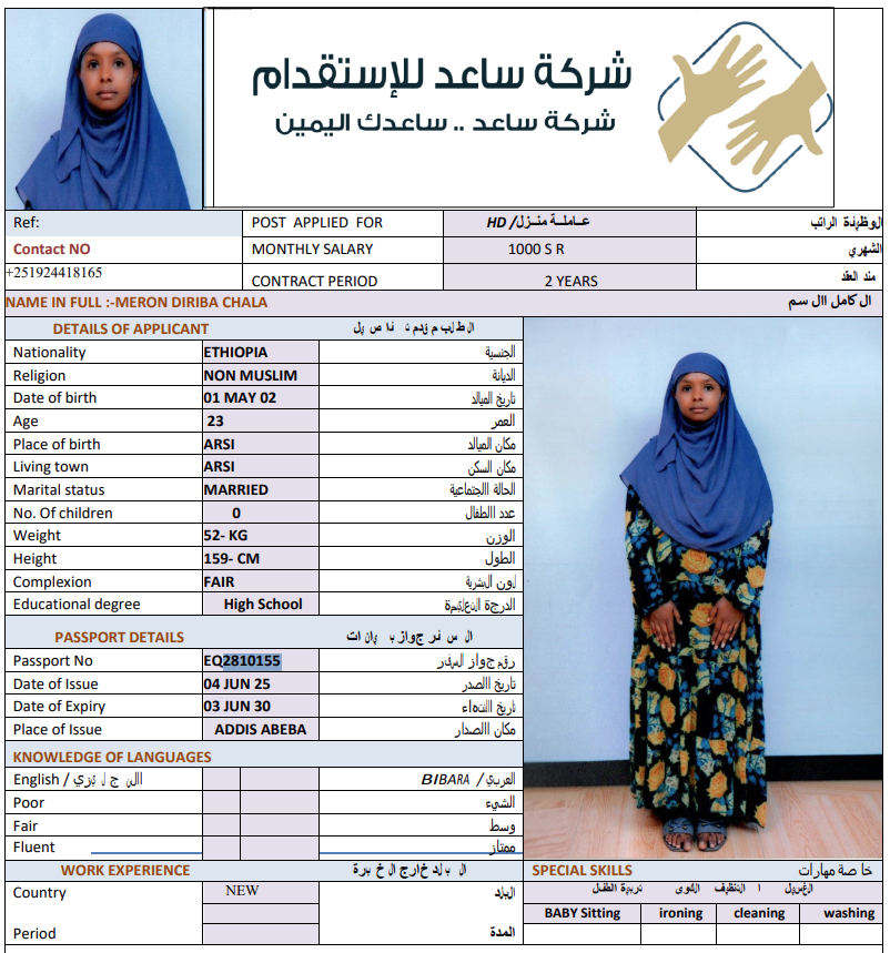 المهنة : عاملة منزلية