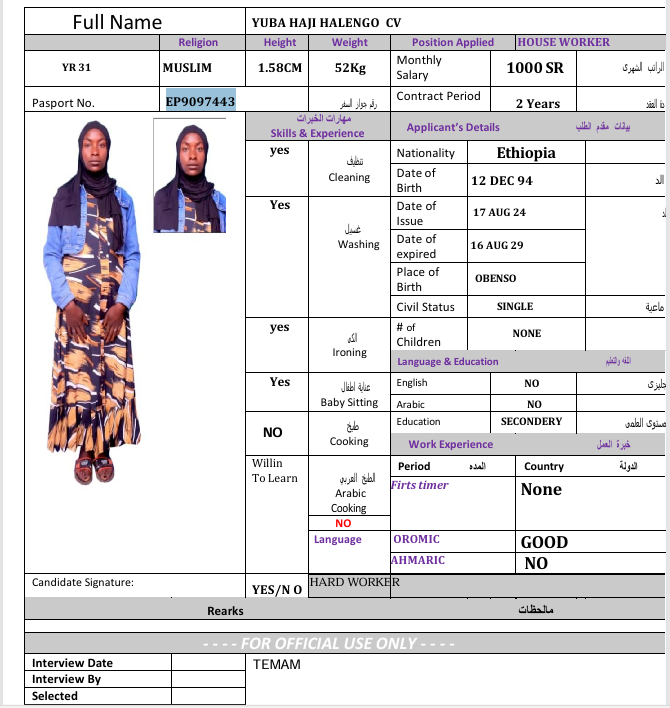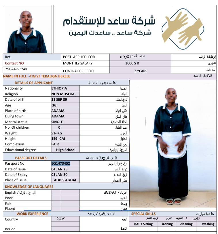 الجنسية : إثيوبيا