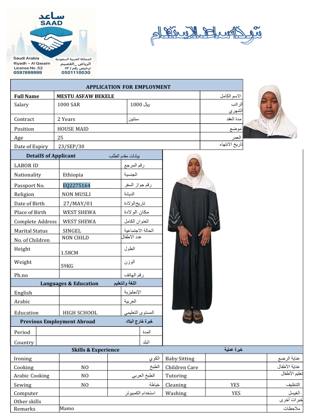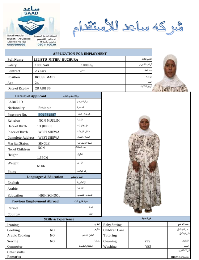 المهنة : عاملة منزلية