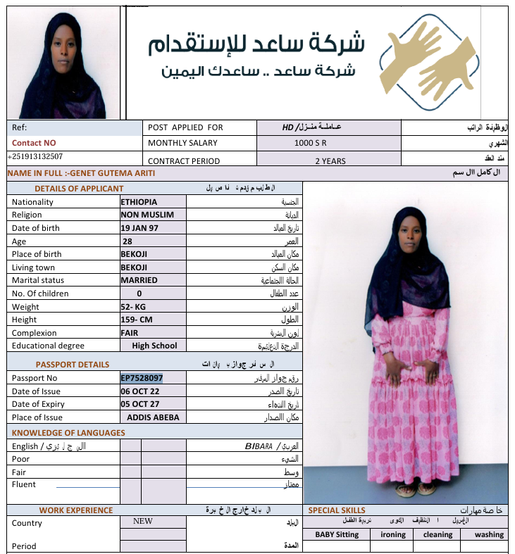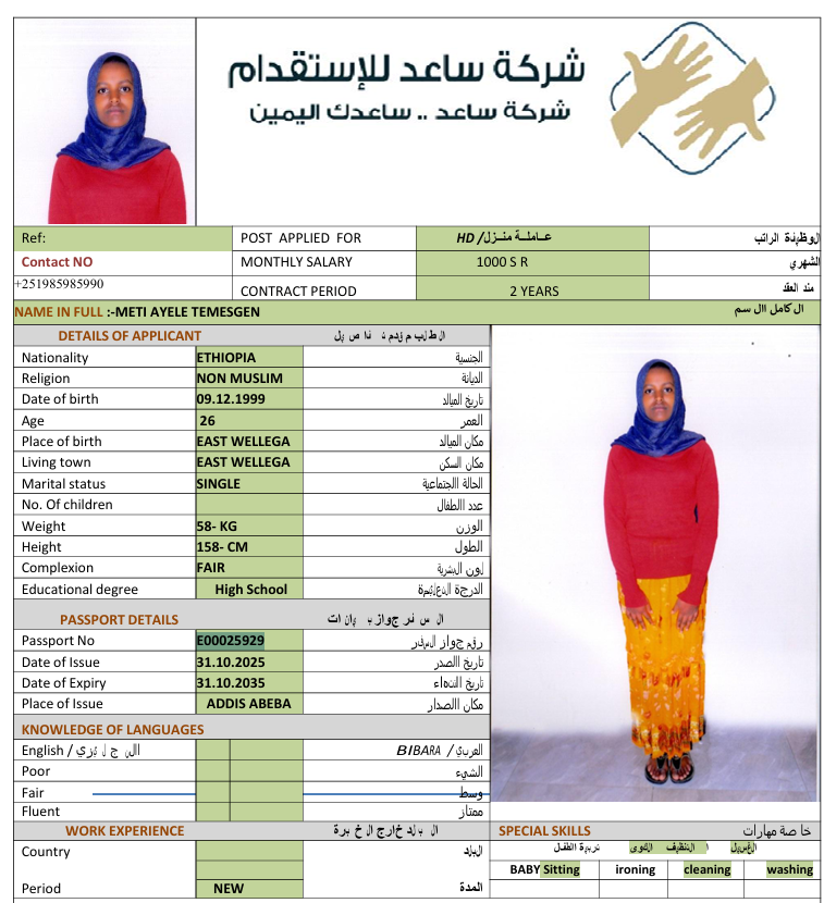 الجنسية : إثيوبيا