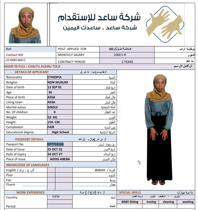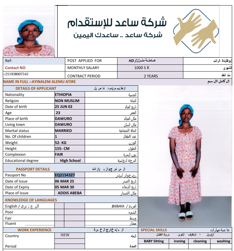 المهنة : عاملة منزلية