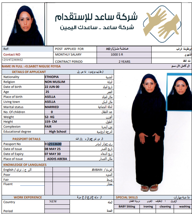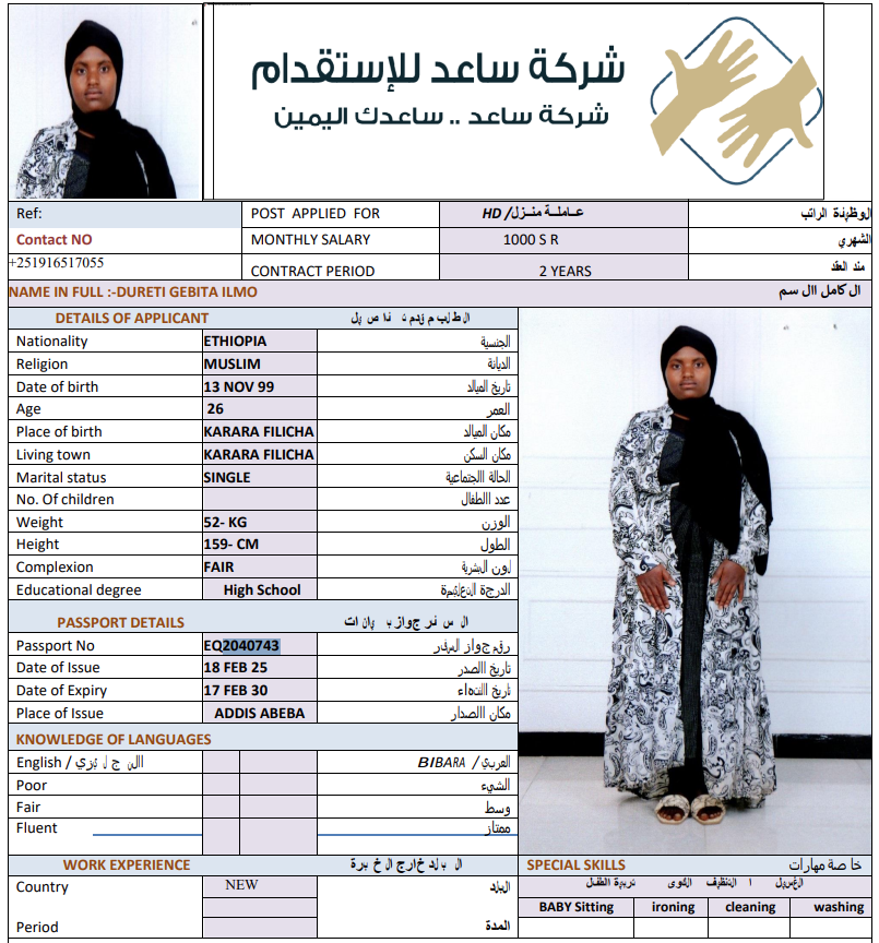 المهنة : عاملة منزلية