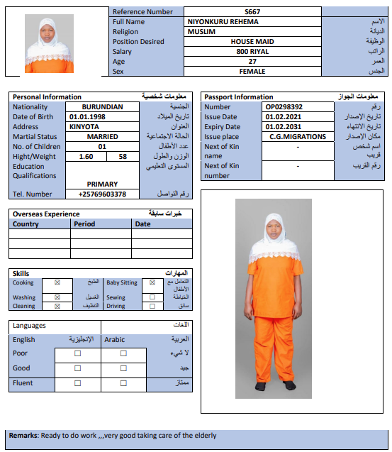 الجنسية : بوروندي