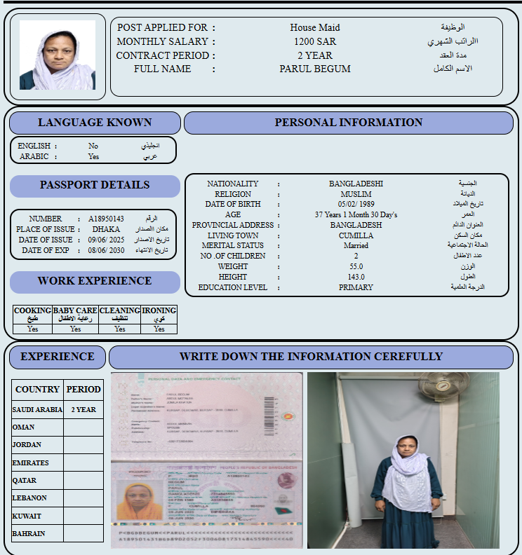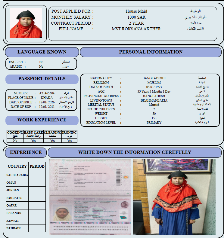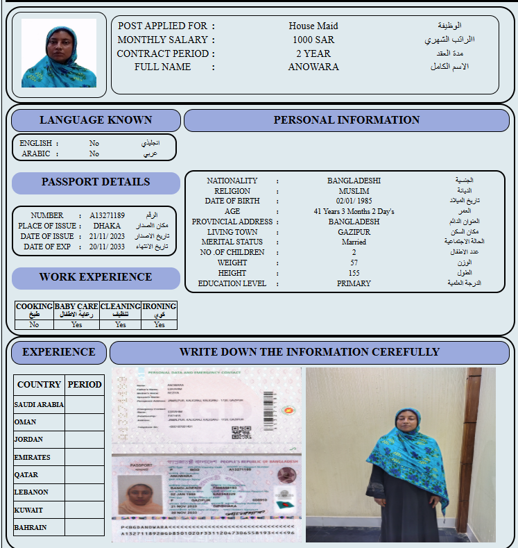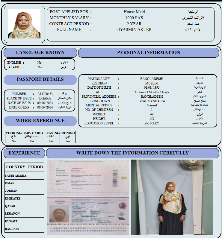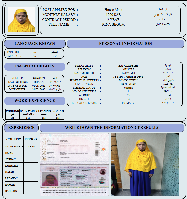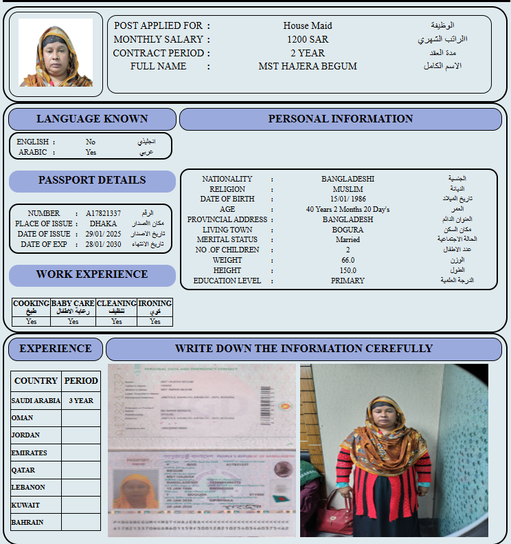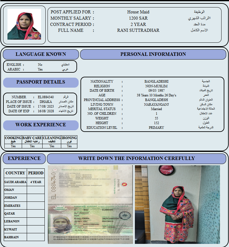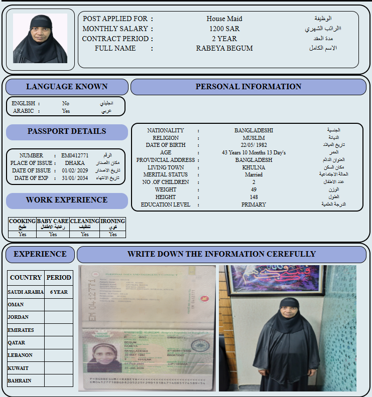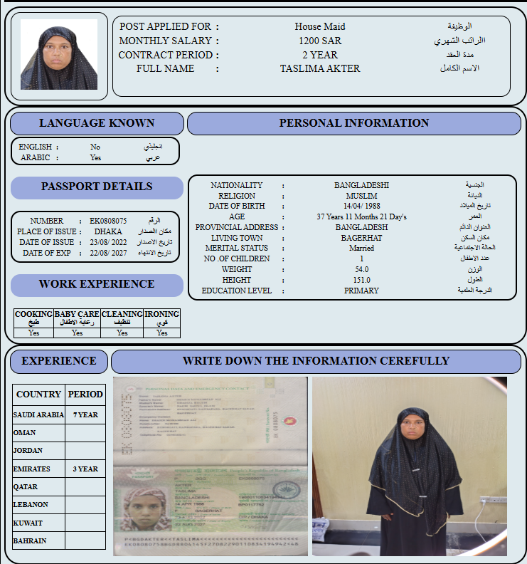 المهنة : عاملة منزلية