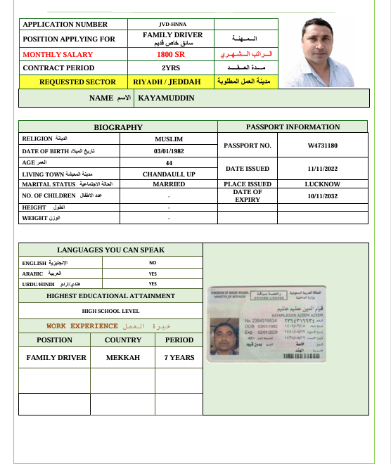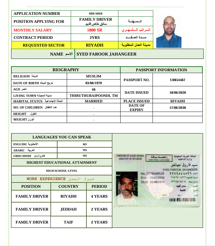 المهنة : سائق خاص
