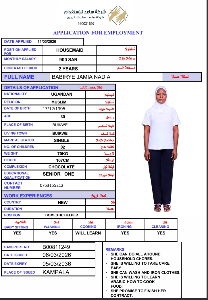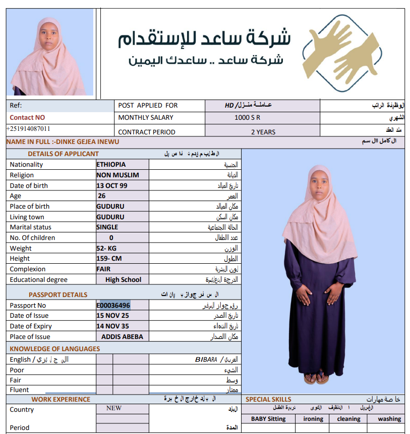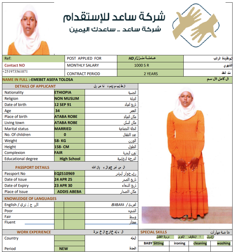 المهنة : عاملة منزلية
