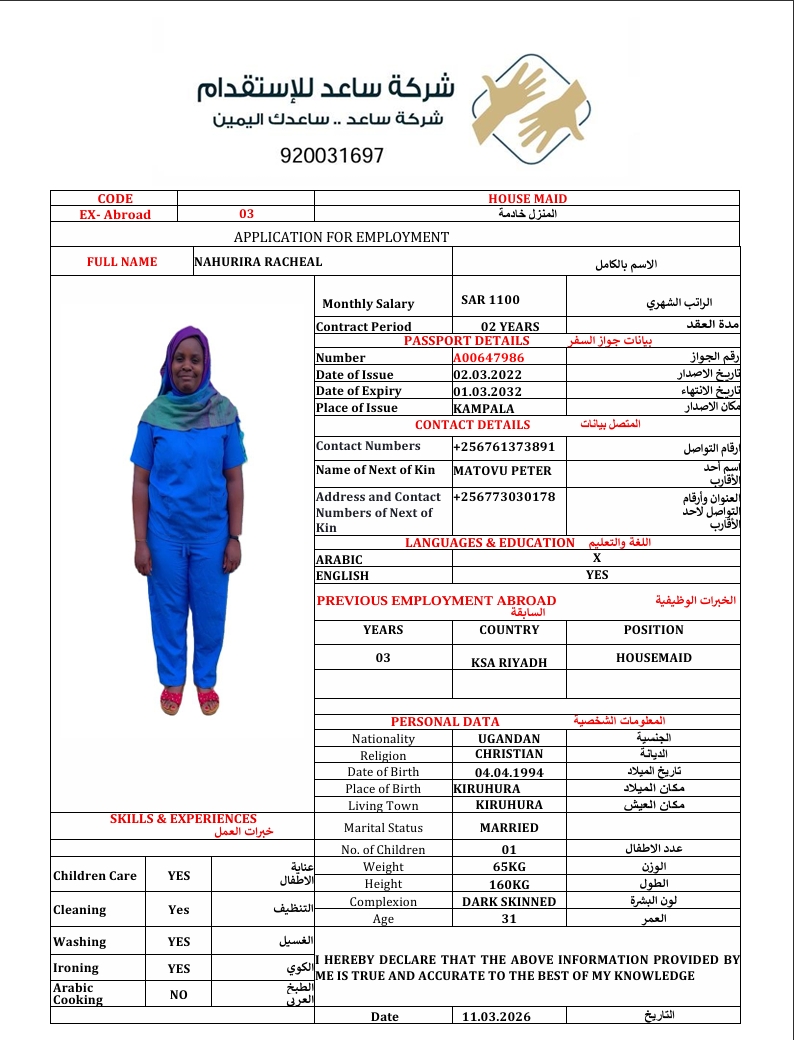 سعر الاستقدام : 3888 ريال