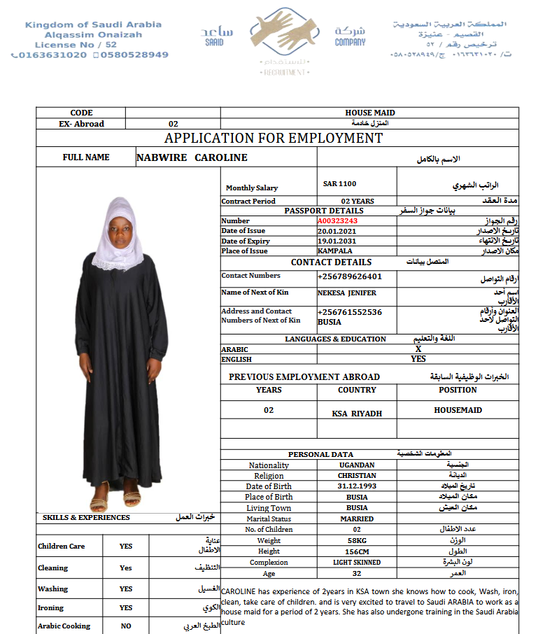 سعر الاستقدام : 7666 ريال