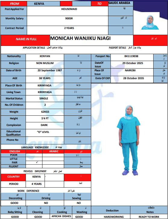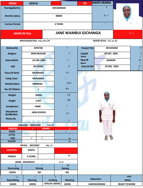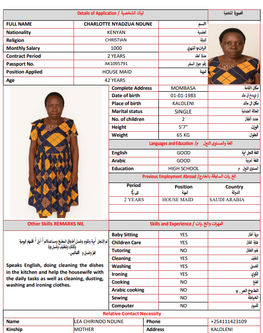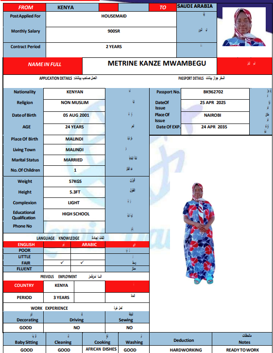 المهنة : عاملة منزلية