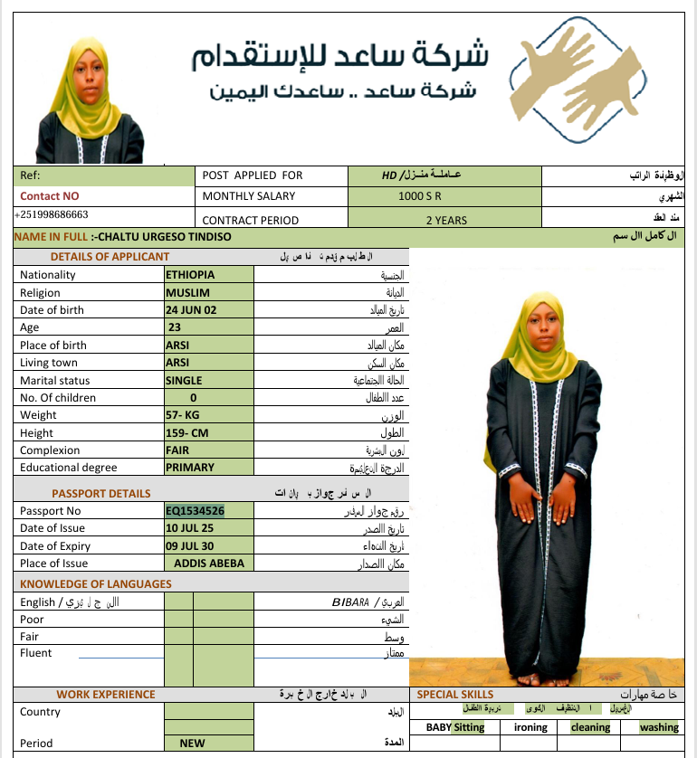 الجنسية : إثيوبيا