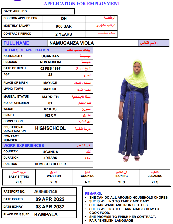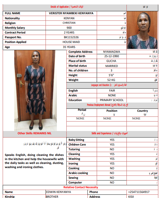 المهنة : عاملة منزلية