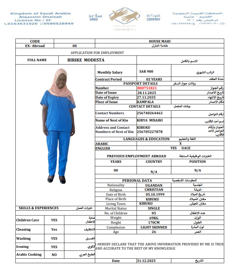 الجنسية : اوغندا
