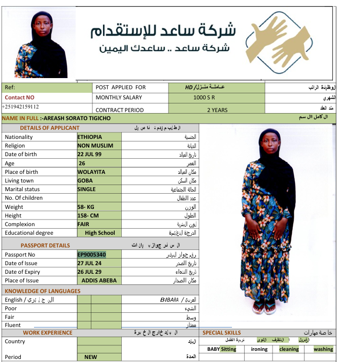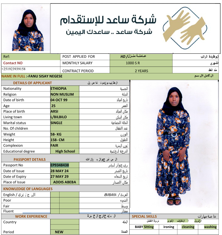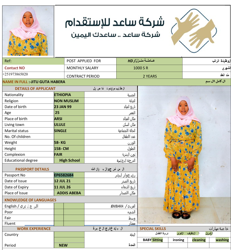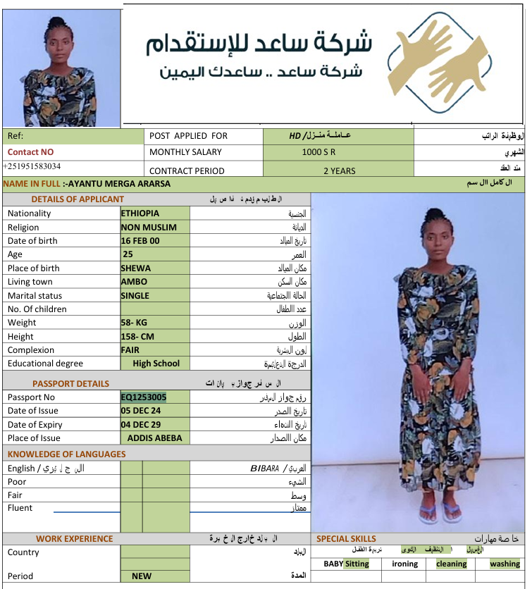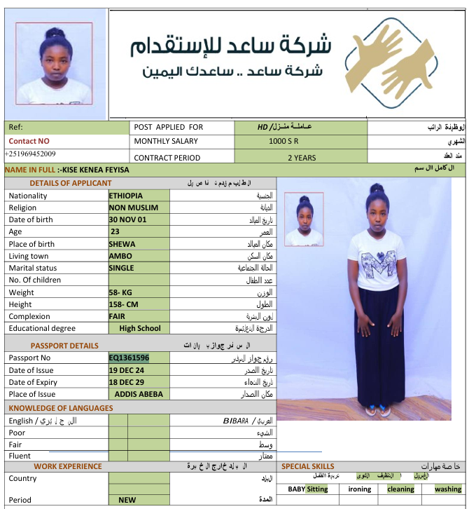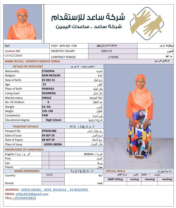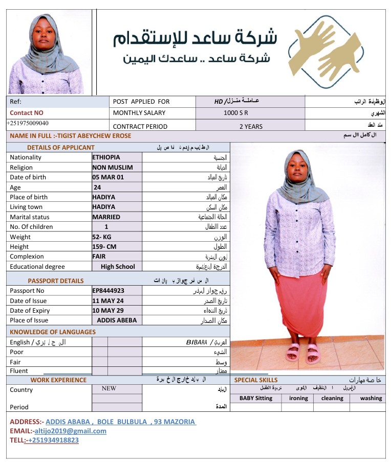 الجنسية : إثيوبيا