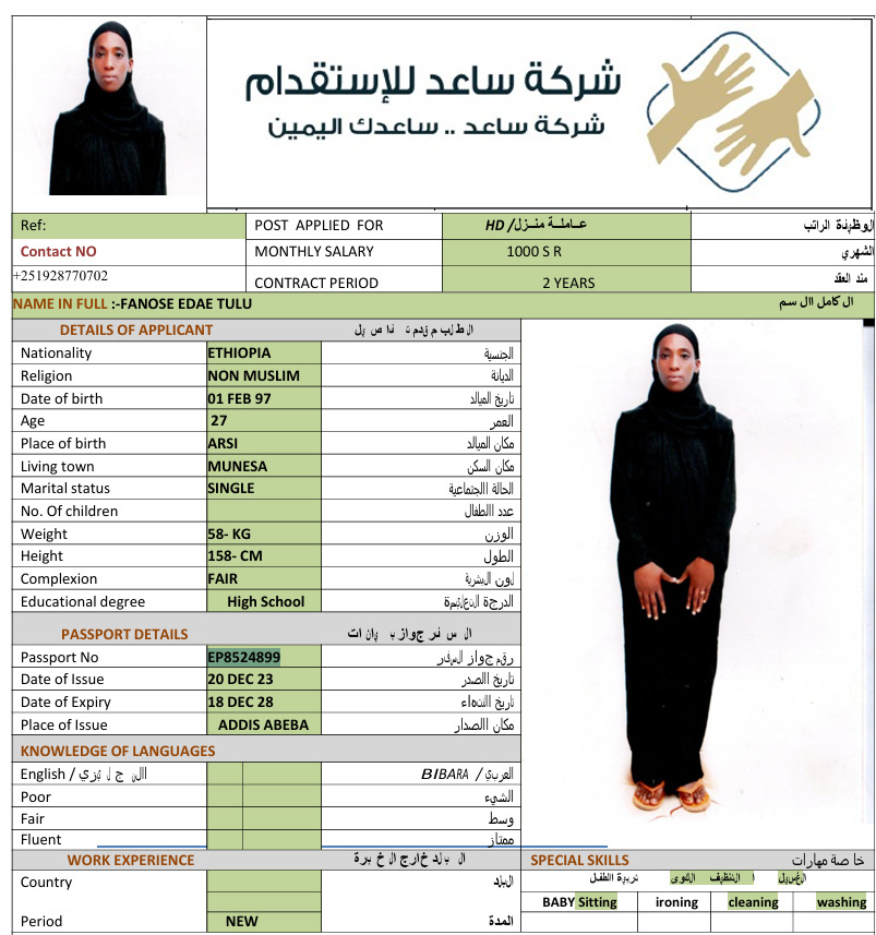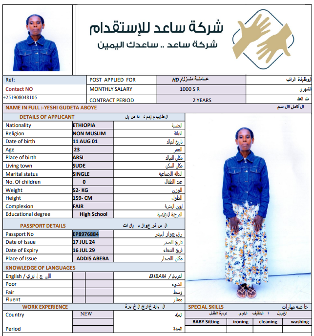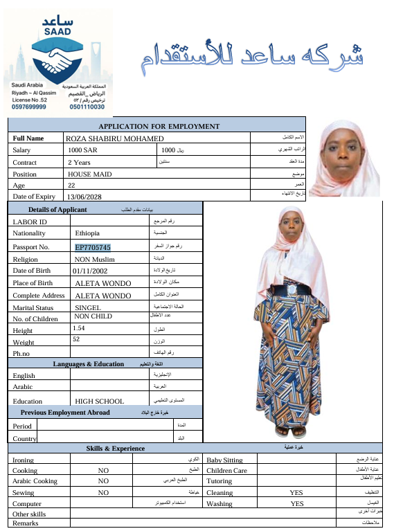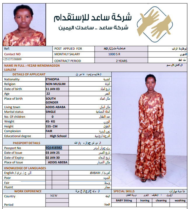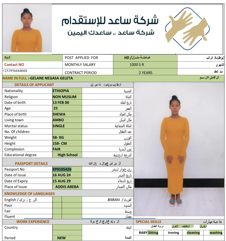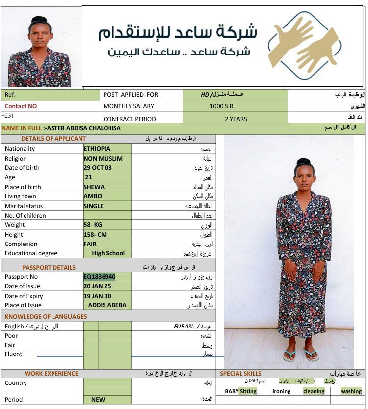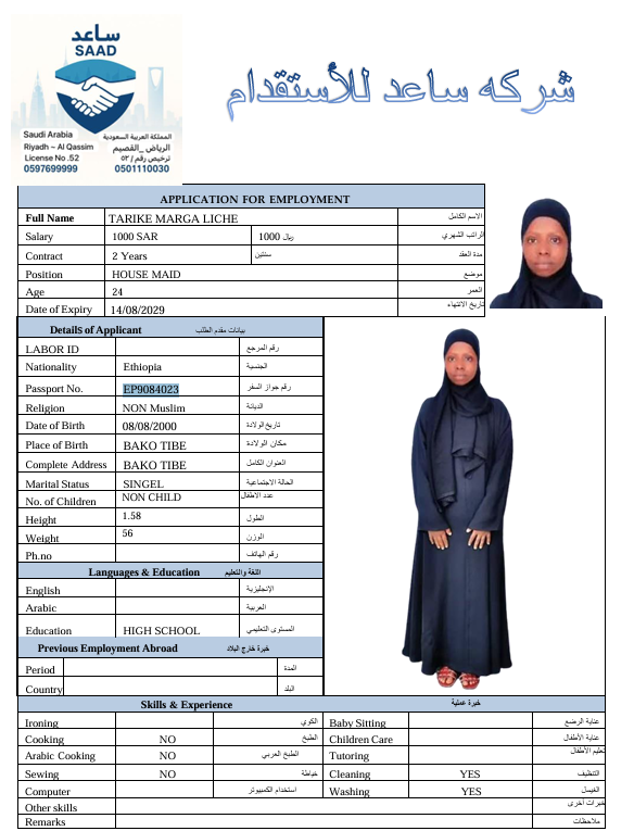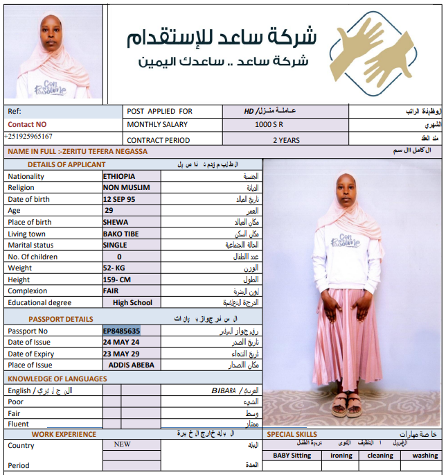 المهنة : عاملة منزلية