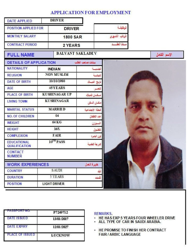 المهنة : سائق خاص