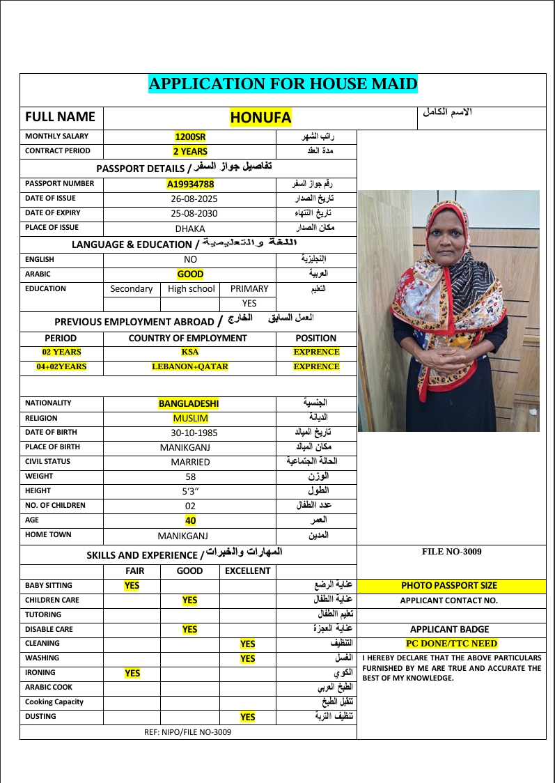 المهنة : عاملة منزلية