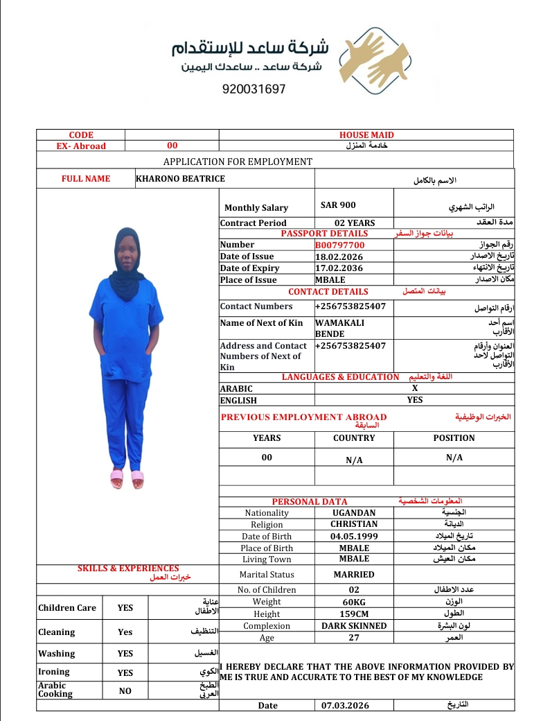 سعر الاستقدام : 4200 ريال