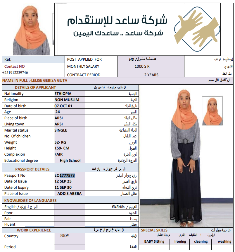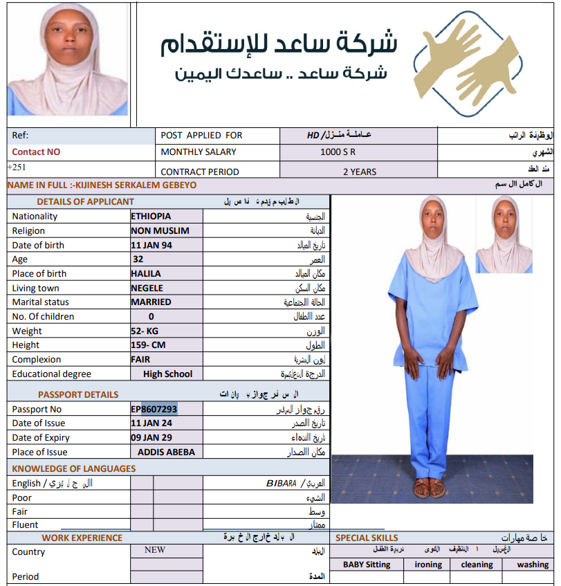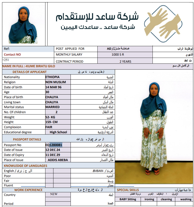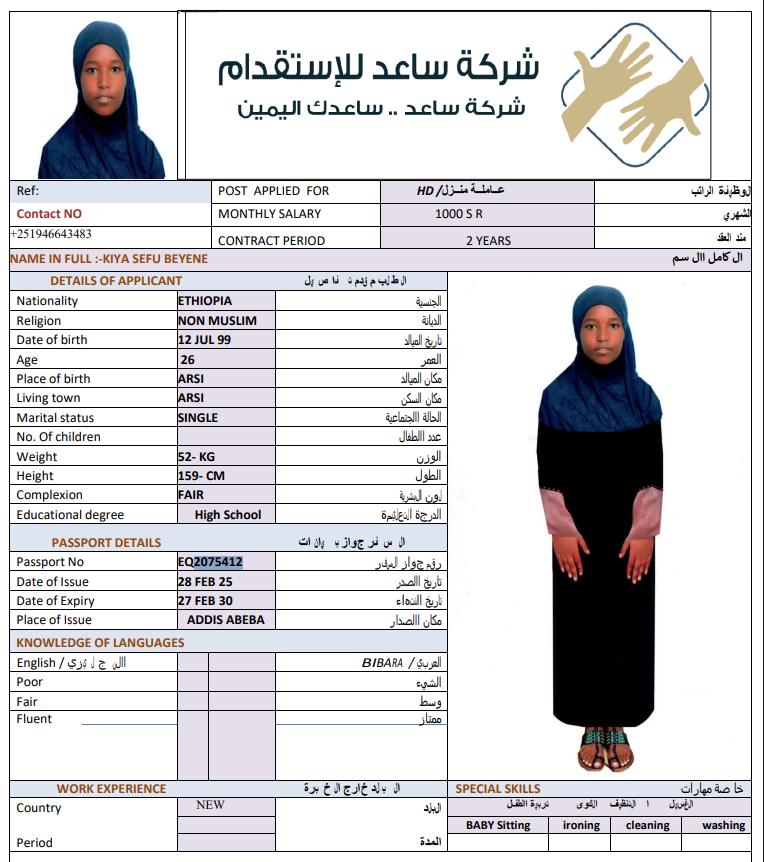 المهنة : عاملة منزلية