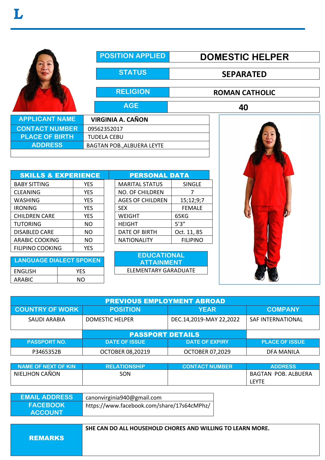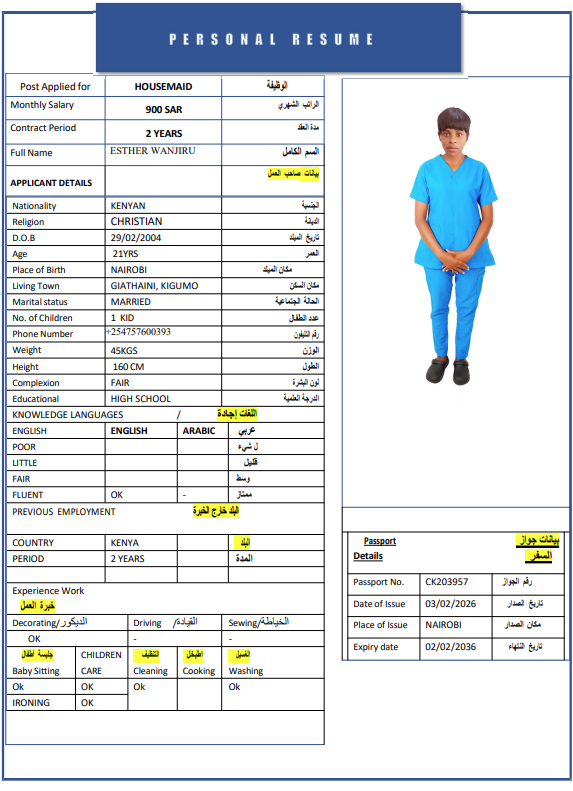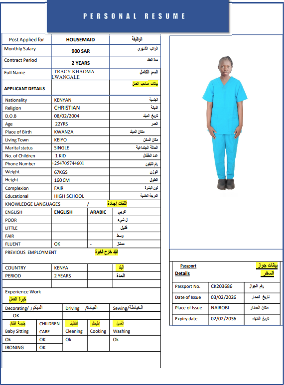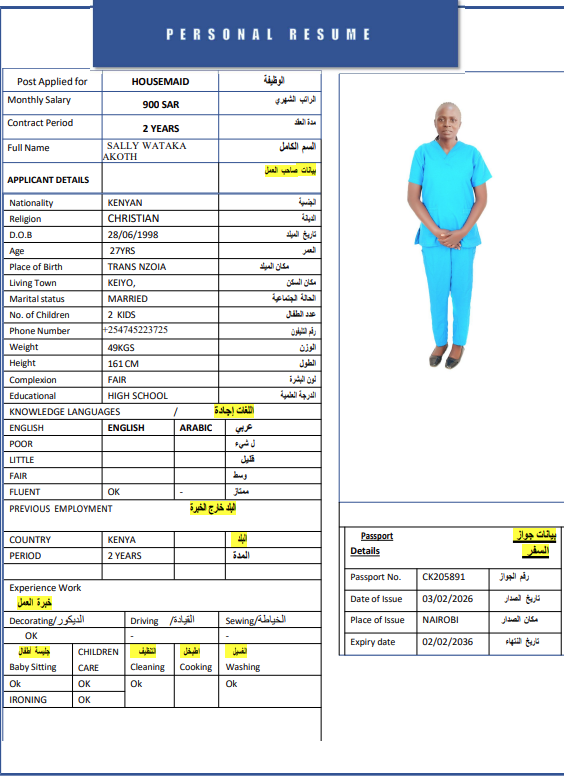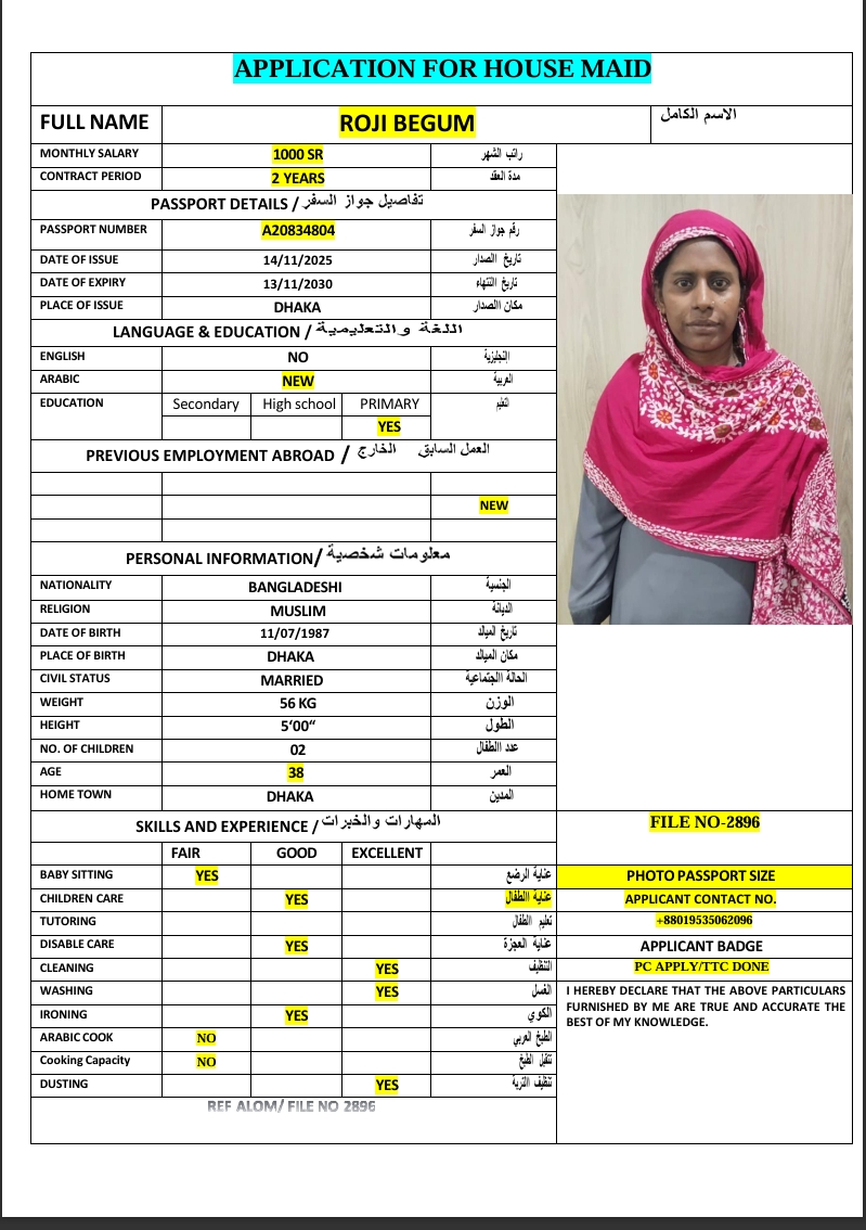 المهنة : عاملة منزلية