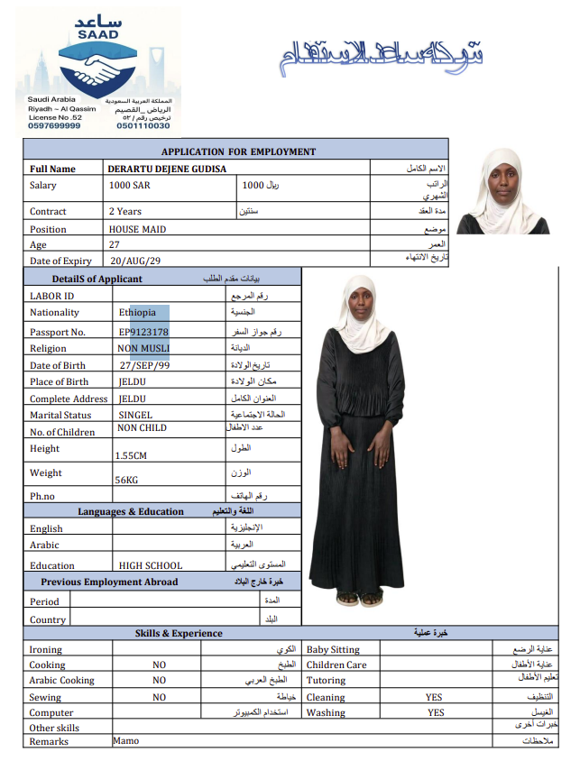 سعر الاستقدام : 7666 ريال