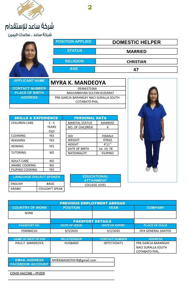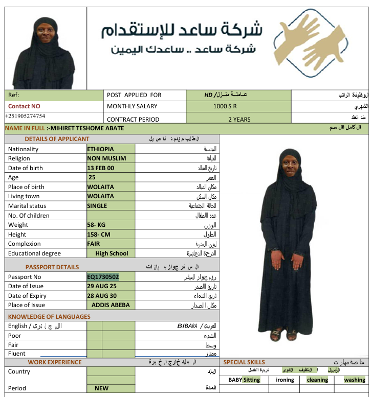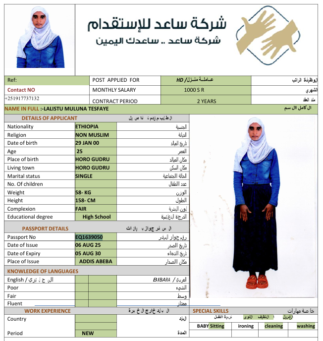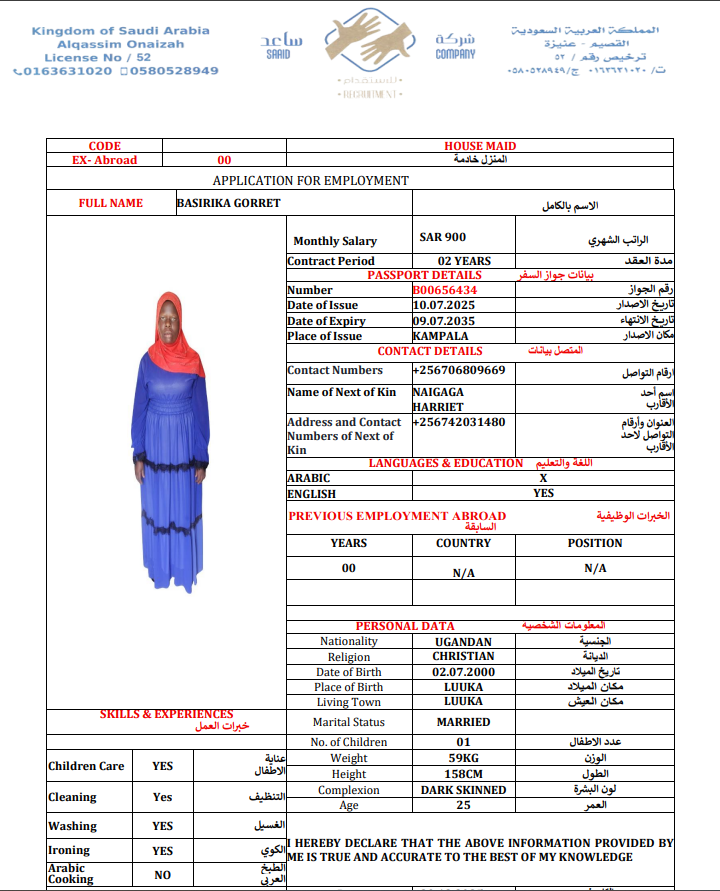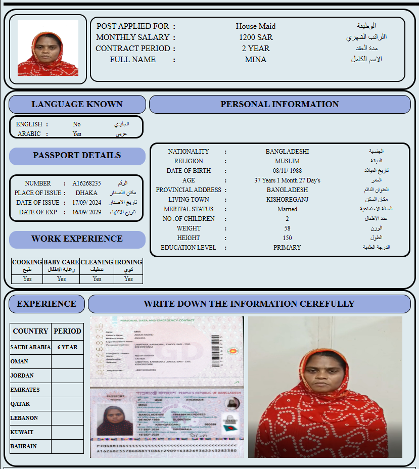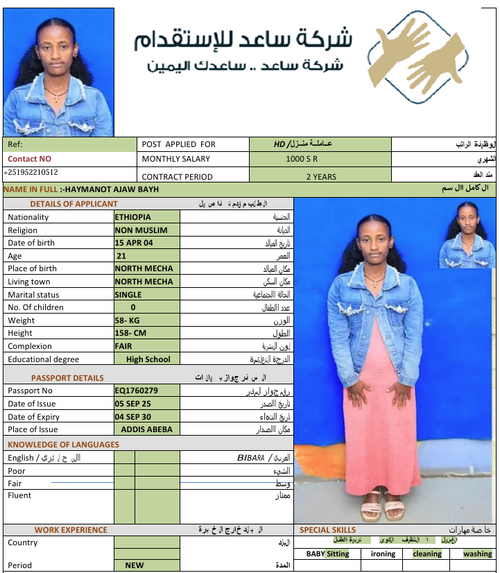 المهنة : عاملة منزلية