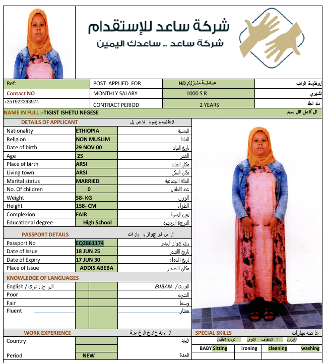 الجنسية : إثيوبيا