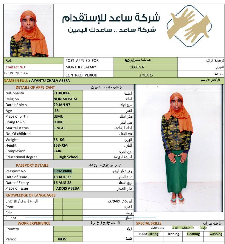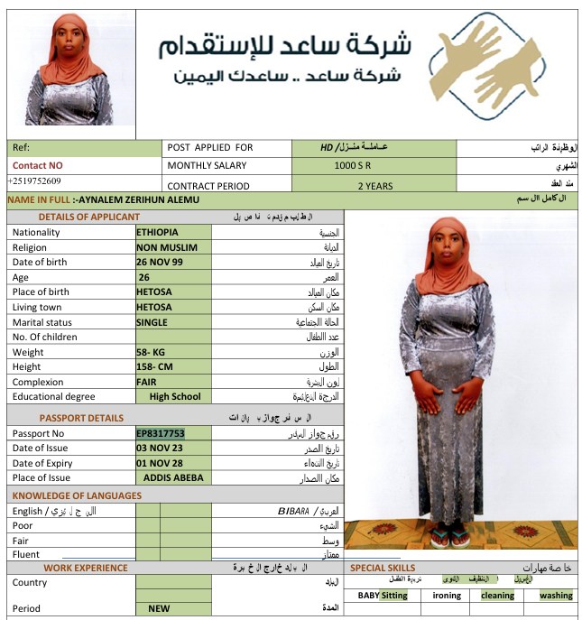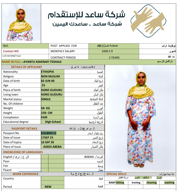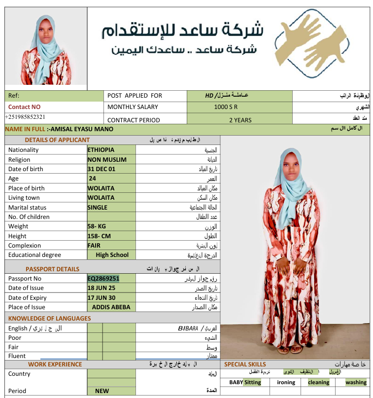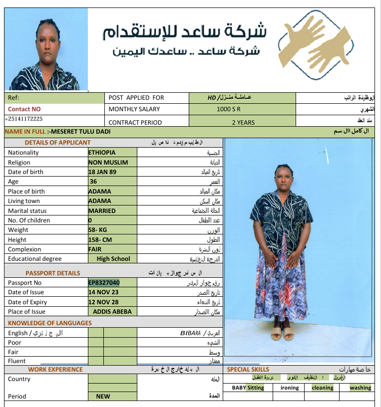 الجنسية : إثيوبيا