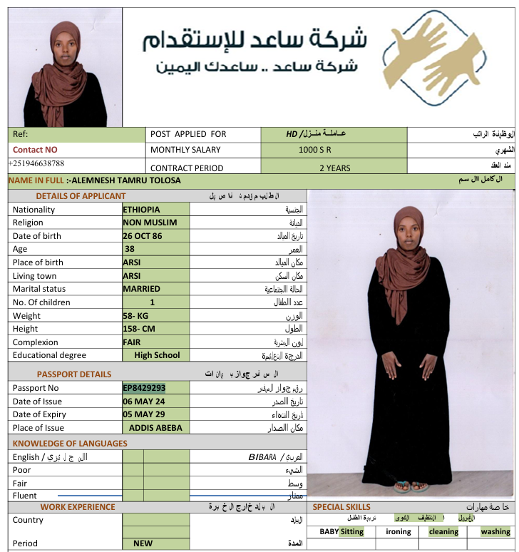المهنة : عاملة منزلية