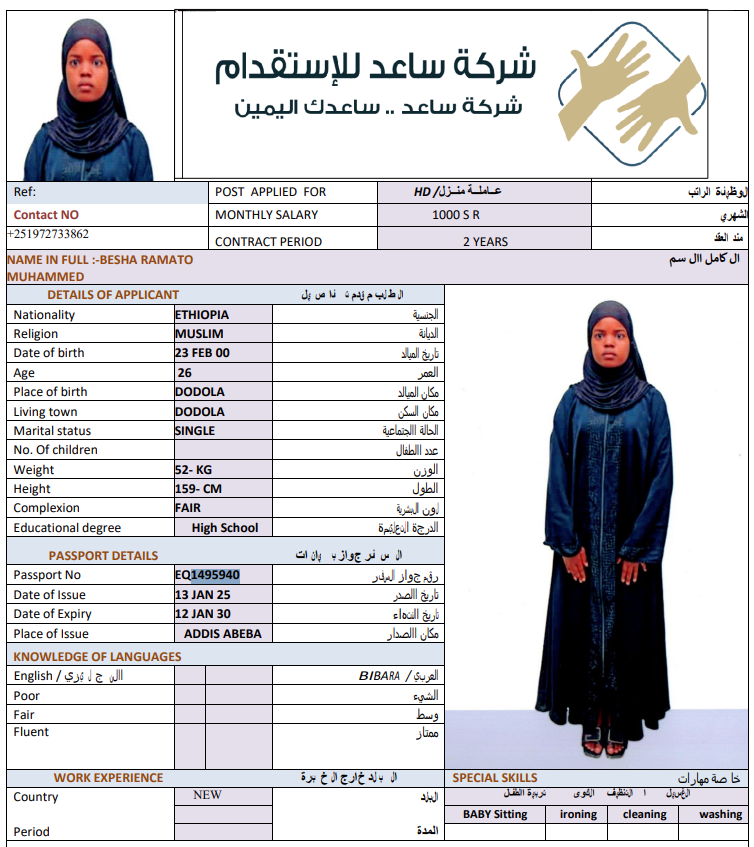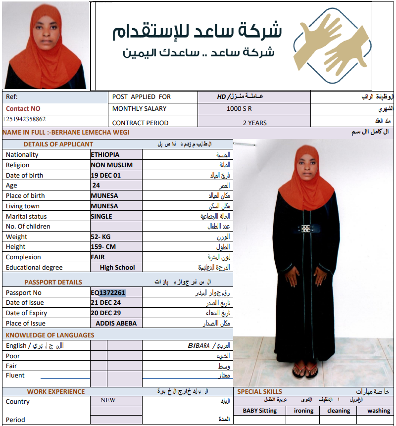 سعر الاستقدام : 5444 ريال