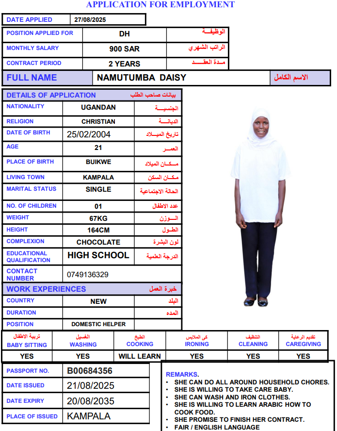 المهنة : عاملة منزلية
