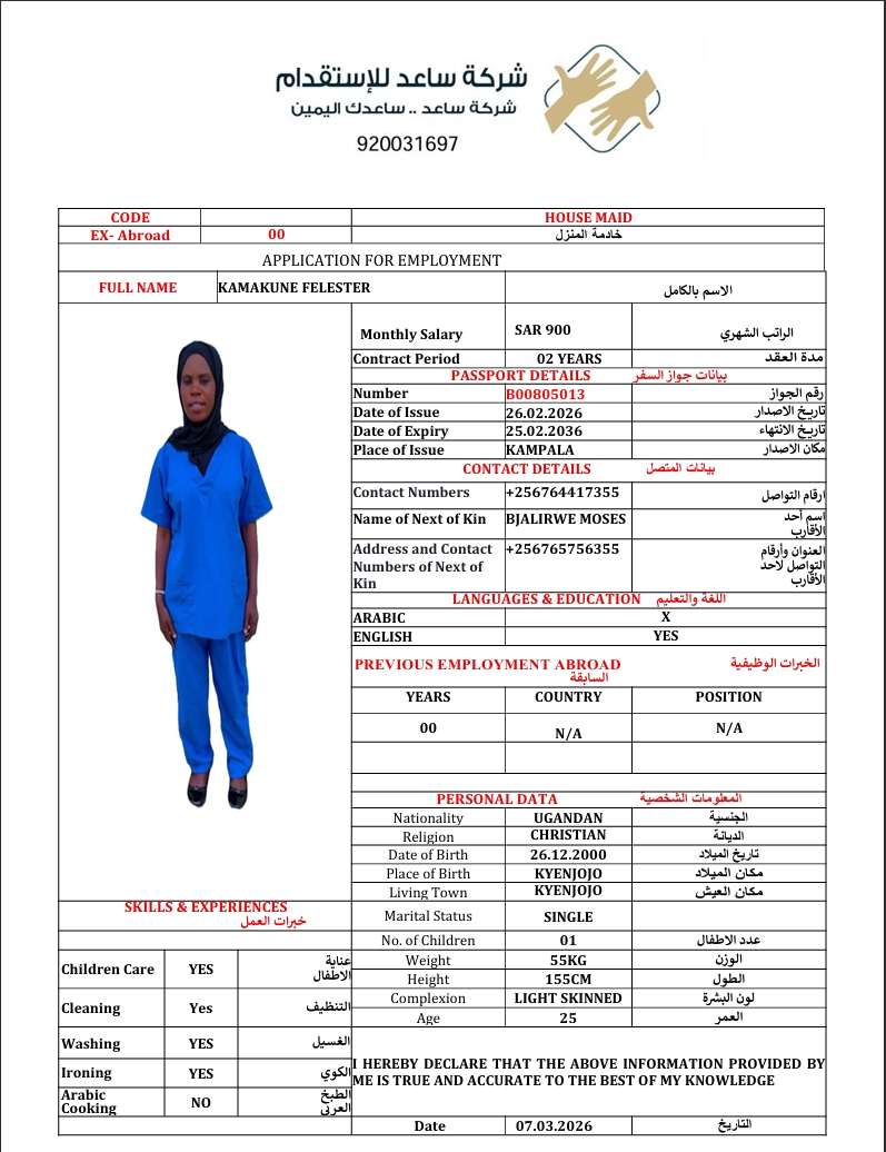 سعر الاستقدام : 4555 ريال