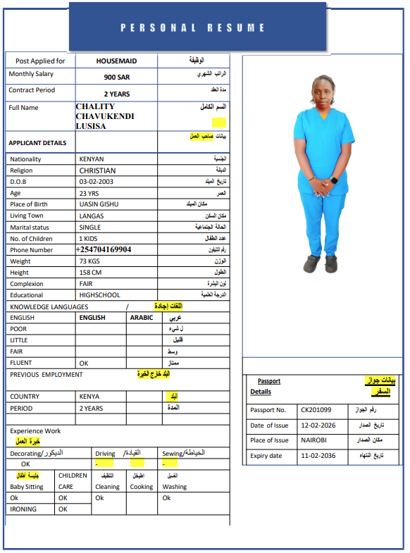المهنة : عاملة منزلية