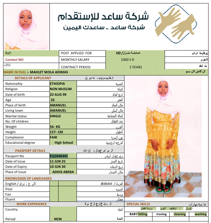 المهنة : عاملة منزلية