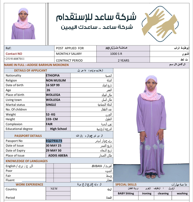 الجنسية : إثيوبيا