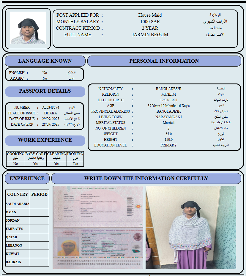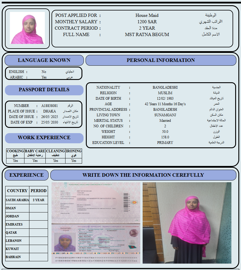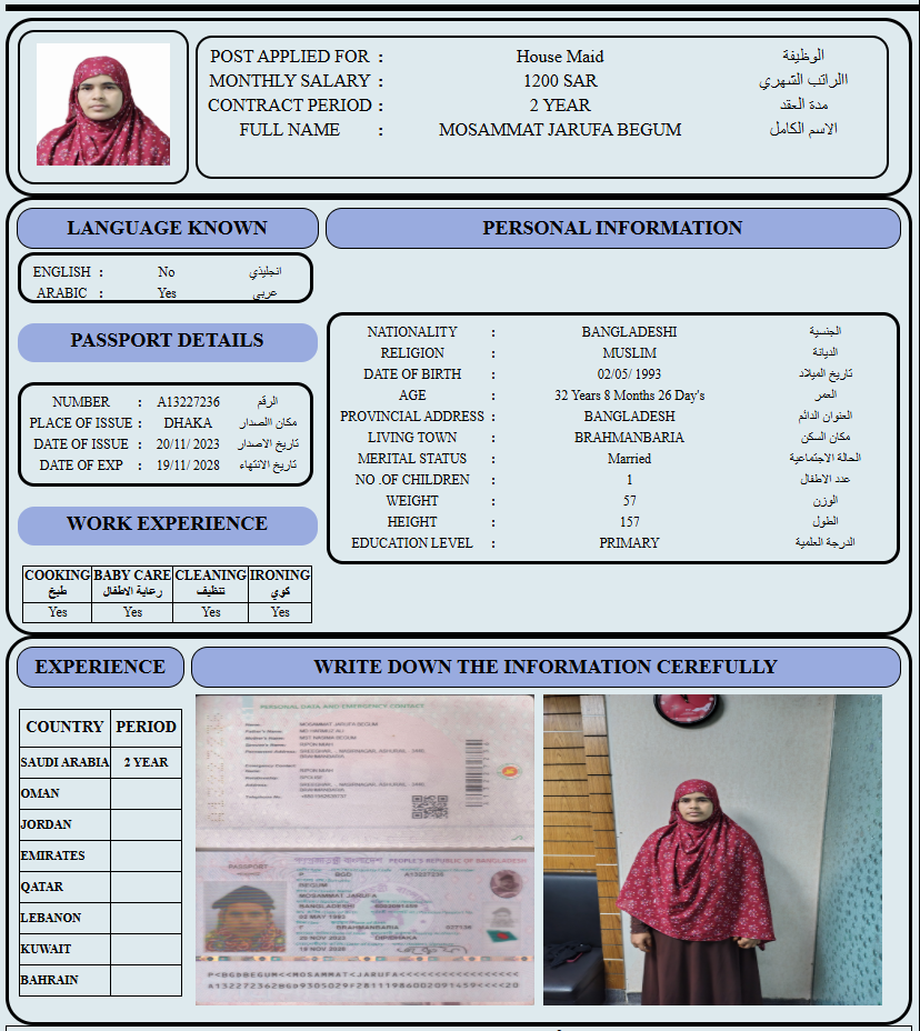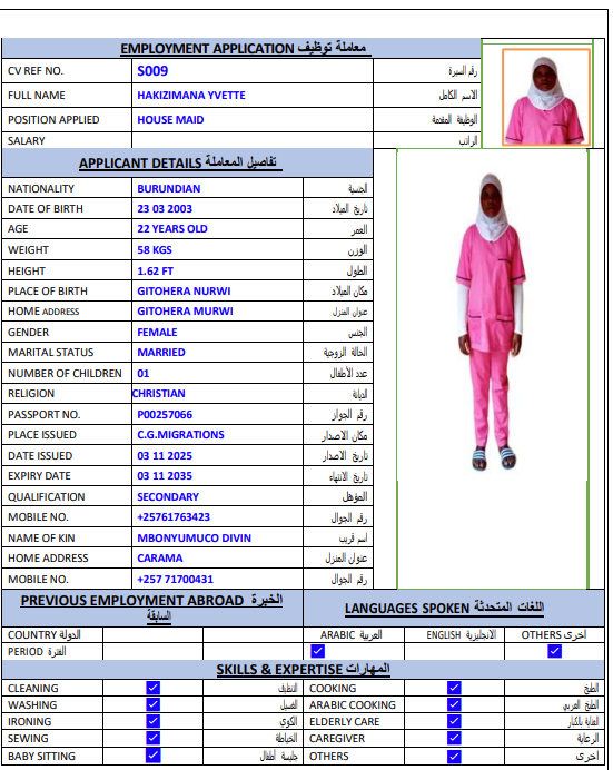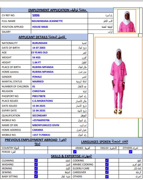 المهنة : عاملة منزلية