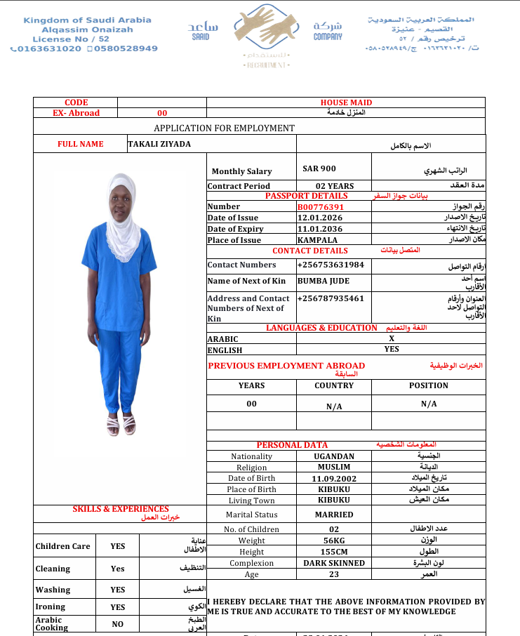 سعر الاستقدام : 7666 ريال