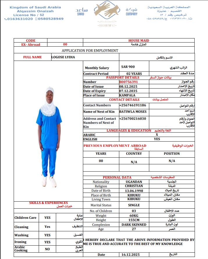 المهنة : عاملة منزلية
