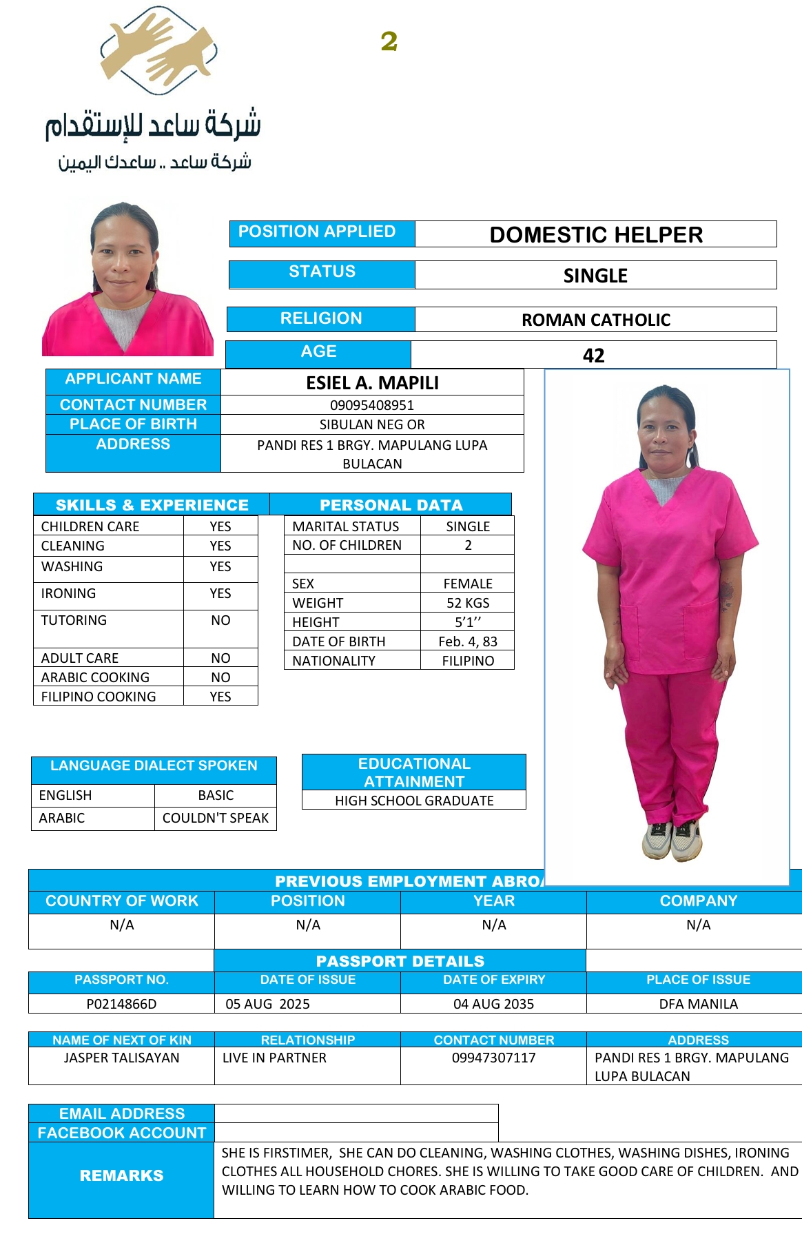 الجنسية : الفلبين
