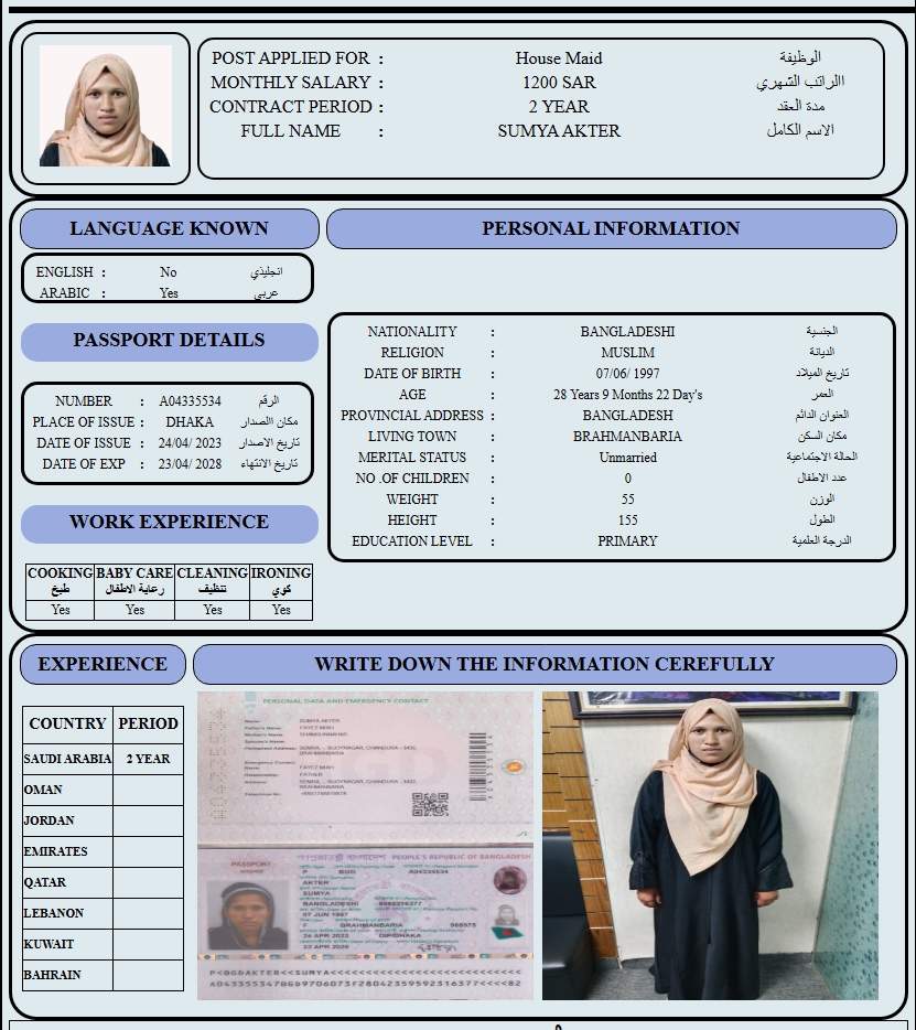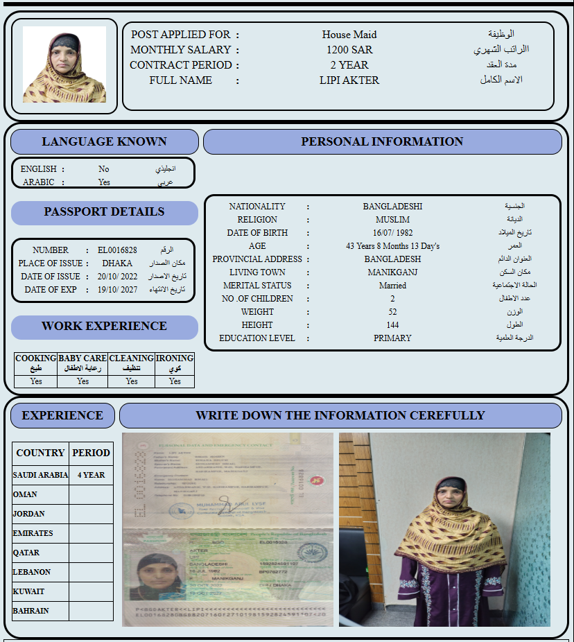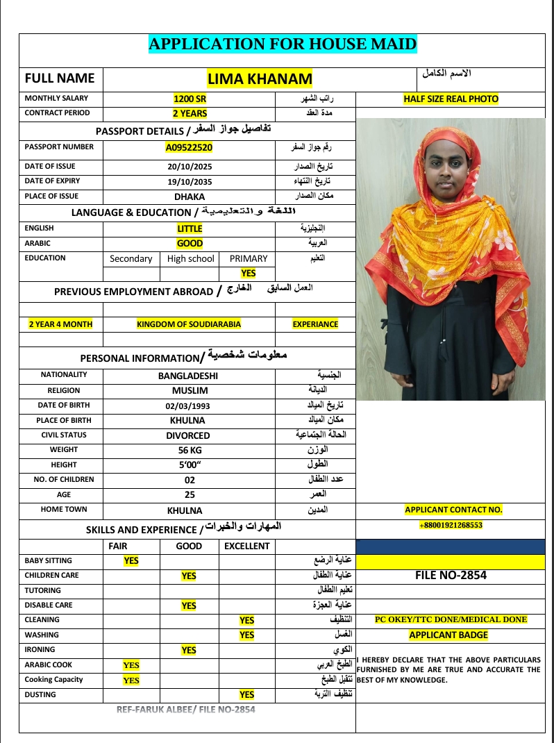المهنة : عاملة منزلية