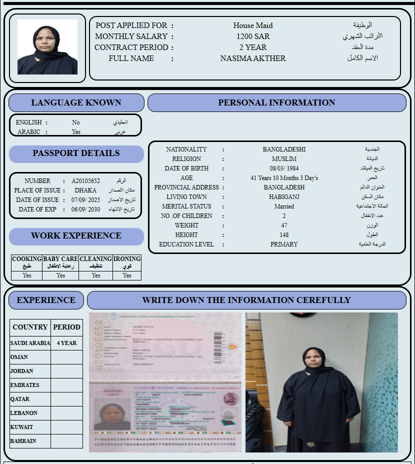 المهنة : عاملة منزلية