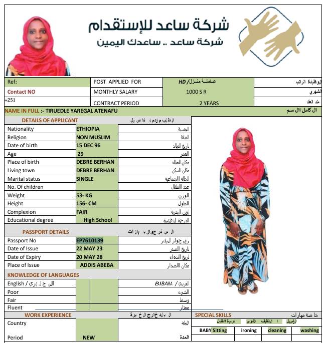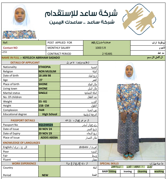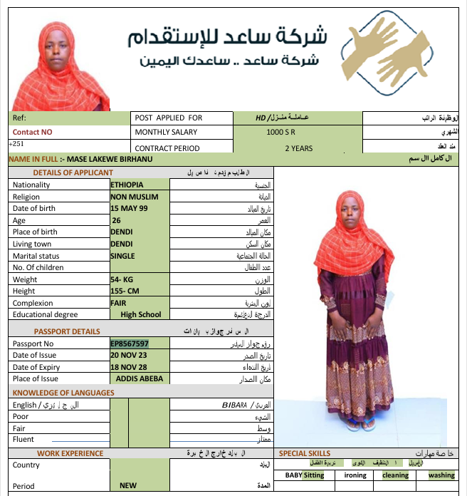 سعر الاستقدام : 7666 ريال